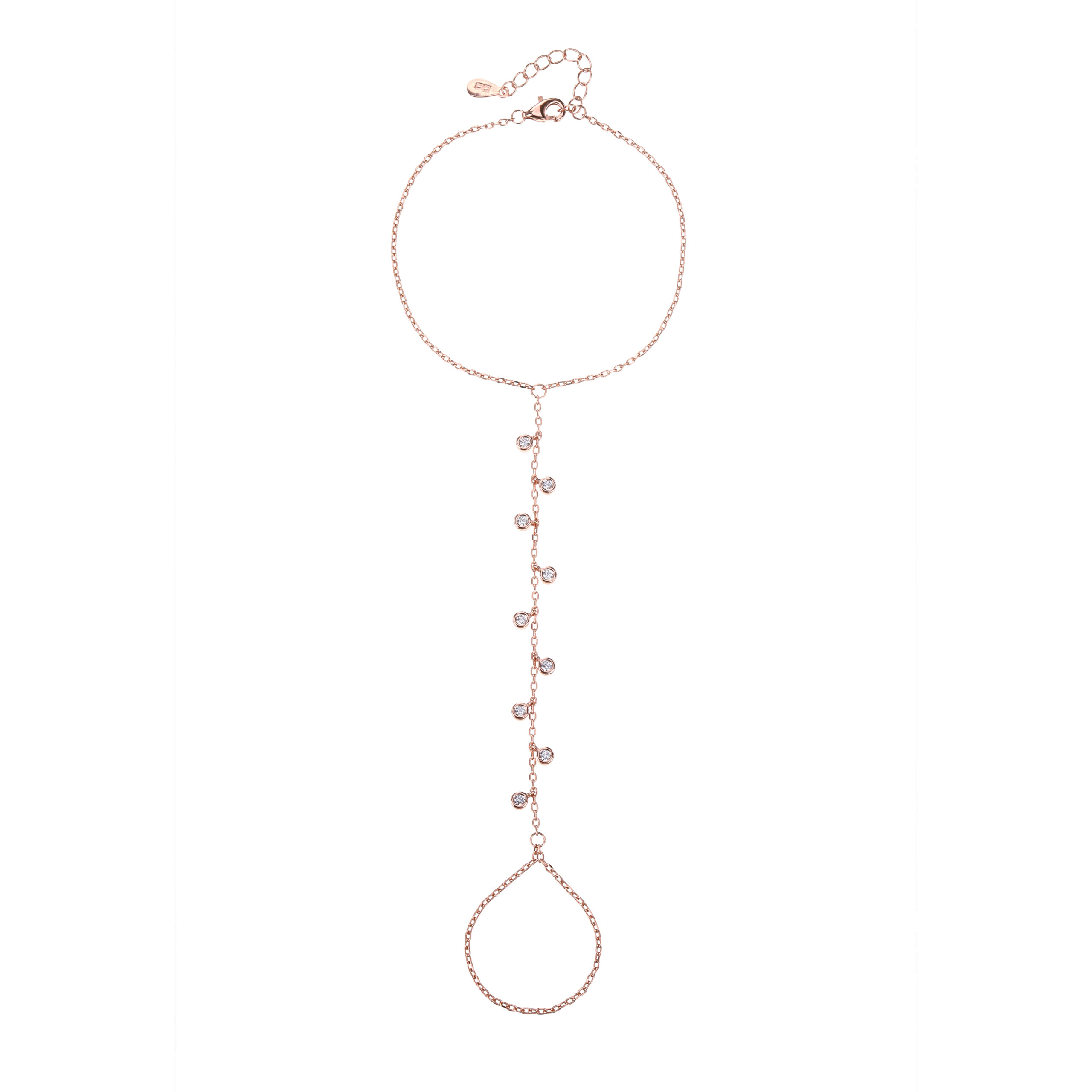 צמיד משולב טבעת עשוי כסף אמיתי 925 בציפוי זהב אדום (רוז גולד) משובץ אבני זרקון אורך 15+5 סמ