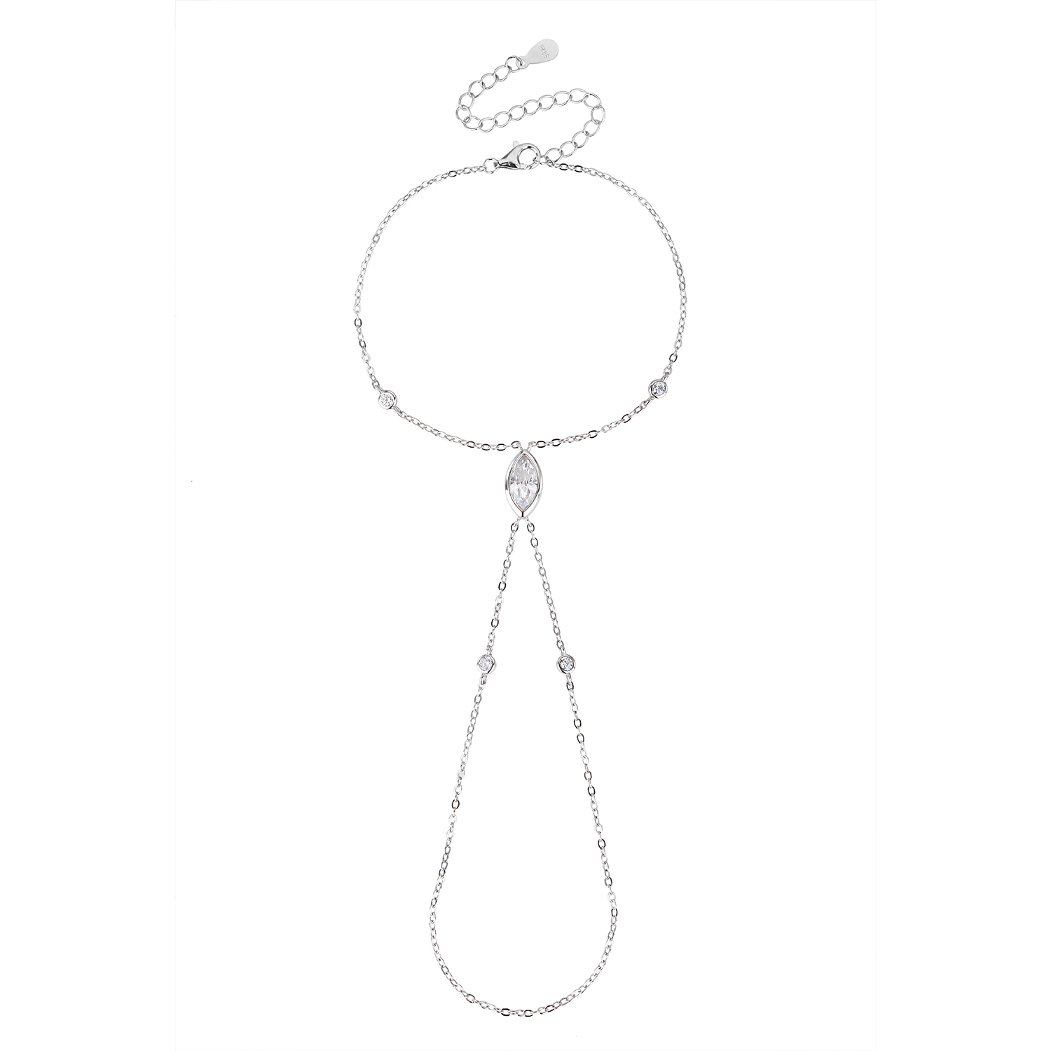 צמיד משולב טבעת עשוי כסף אמיתי 925 משובץ אבני זרקון
