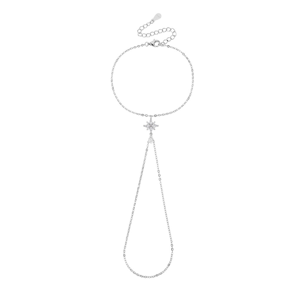 צמיד משולב טבעת עשוי כסף אמיתי 925 משובץ אבני זרקון אורך 15+5 סמ