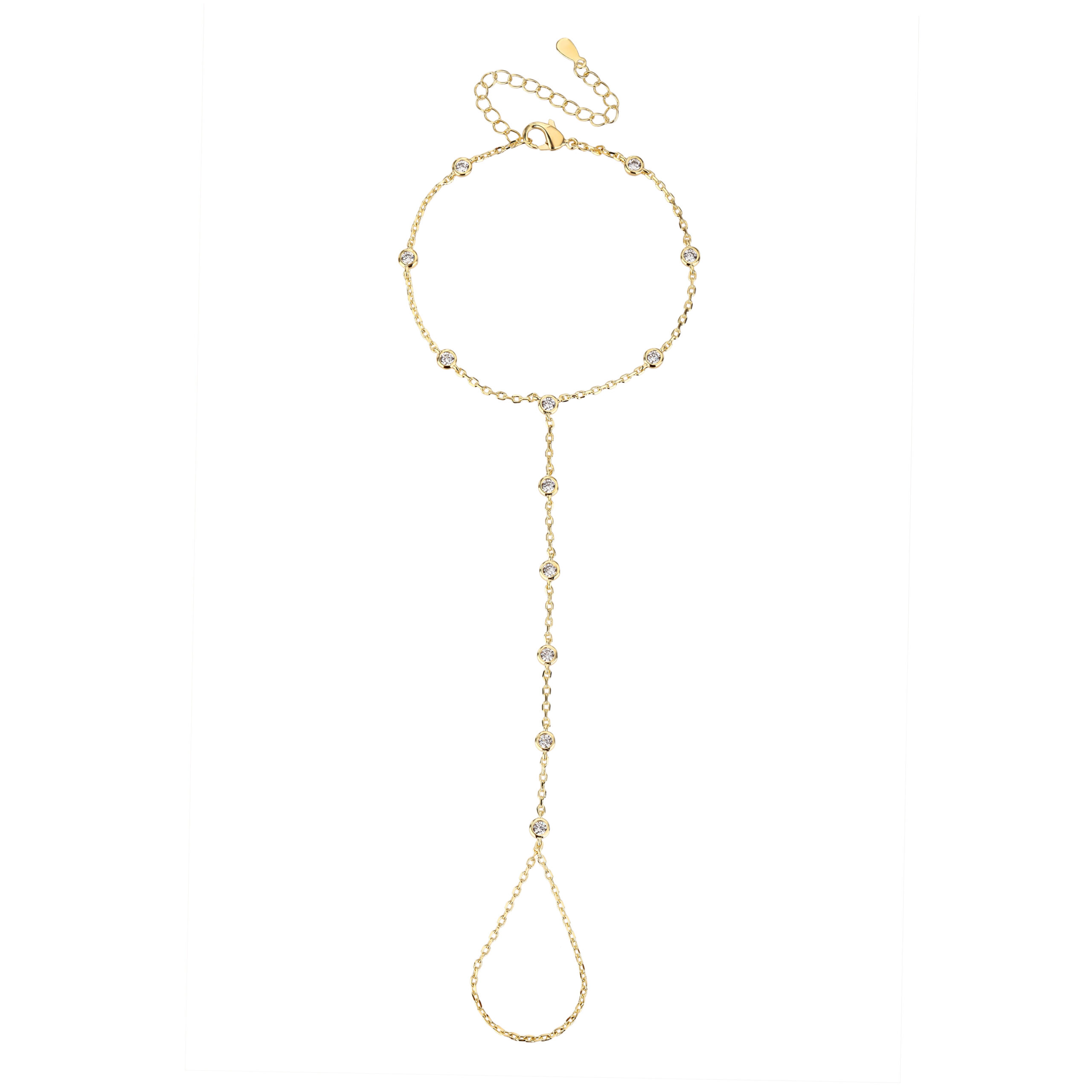 צמיד משולב טבעת עשוי פליז בציפוי זהב 14K בעובי 2 מיקרון משובץ אבני זרקון אורך 15+5 סמ