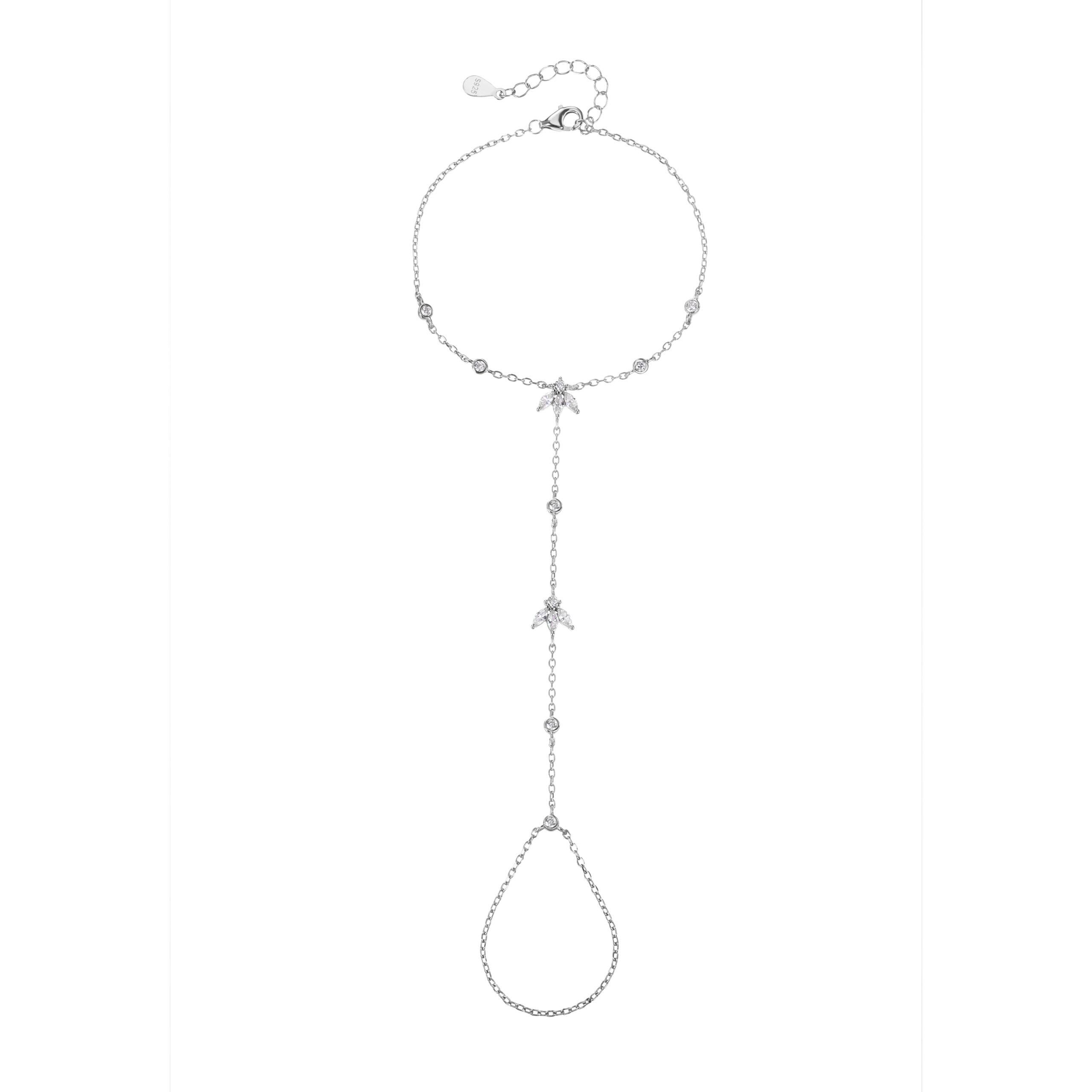 צמיד משולב טבעת עשוי כסף אמיתי 925 משובץ אבני זרקון אורך 15+5 סמ